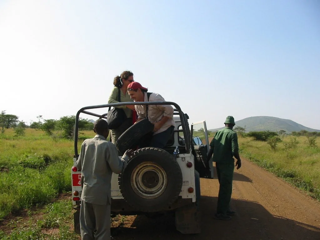 Meeting some rangers after attempting the Serengeti in our Toyota station wagon.