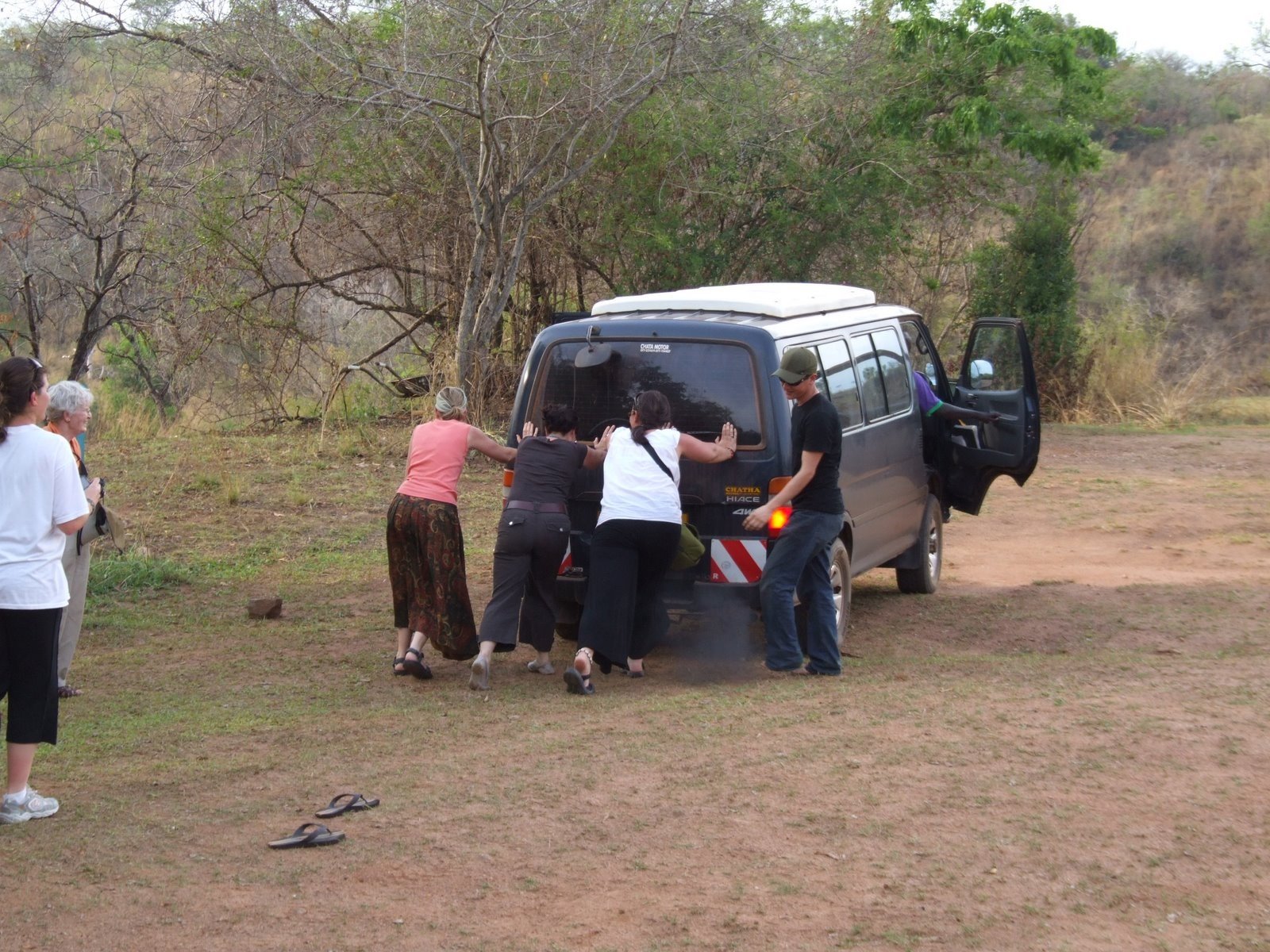 Sometimes a broken down vehicle turns into a teambuilding exercise. Photo credit: Mark Jordahl