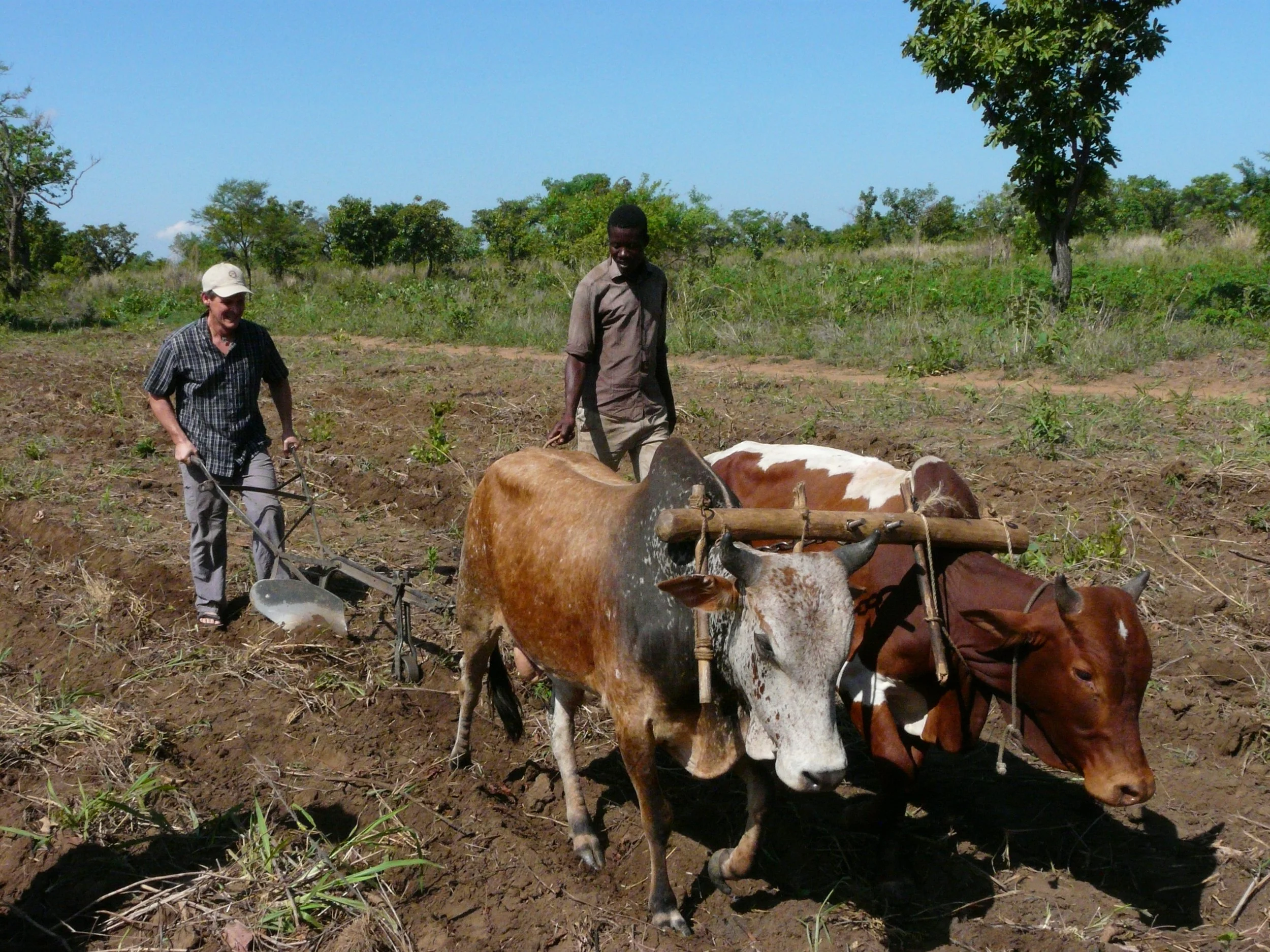 Learning to break ground with an oxplow in northern Uganda.
